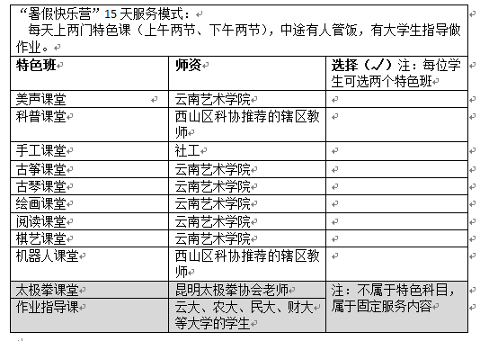 “暑假快乐营”相关重要信息: