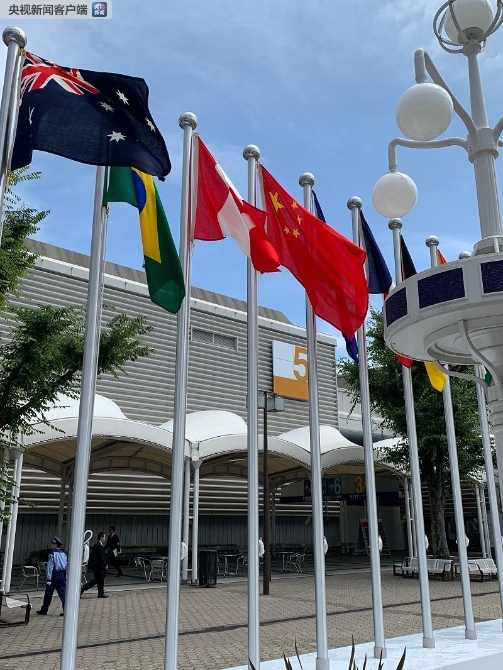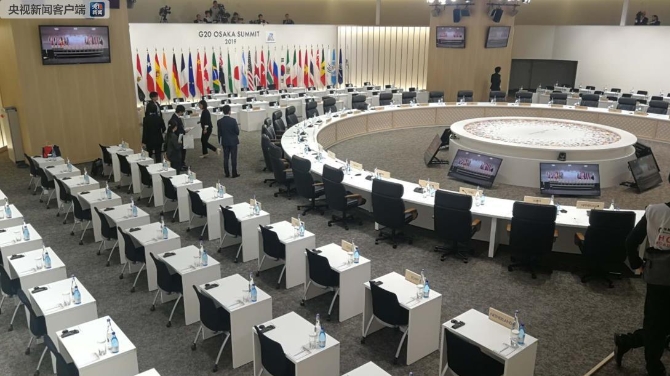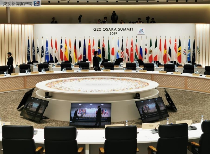 △第三阶段会议会场在大阪国际会展中心6号楼1层全会厅。(记者 黄京辉 拍摄)