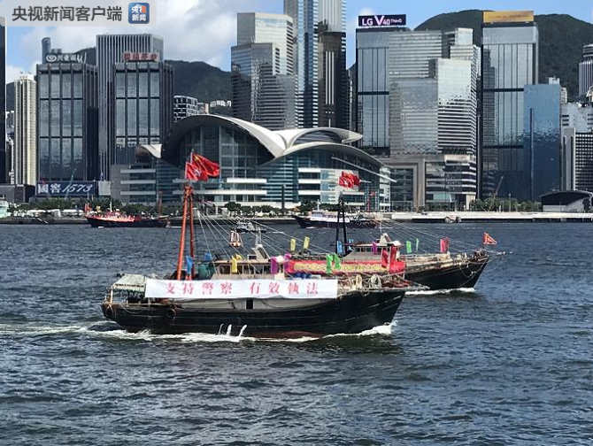 主办机构香港渔民团体联会表示,此次巡游是为了庆祝国庆70周年和香港回归22周年,渔民团体希望与香港社会各界共同庆祝国庆及回归,也期望向社会传达香港人团结和谐的重要性,以及撑警察、护法治、保平安的重要讯息。(央视记者 张成 朱丹)