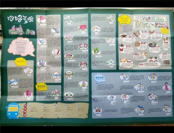 在此基础上,学生们和老师还继续推出了“书香工院”主题的手绘地图,使用双语内容,对学院的发展背景和文化氛围做了详细介绍。