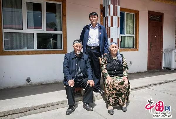 努尔江与父亲吾任太·热汗拜(左)和母亲合影。 中国网记者 伦晓璇 摄
