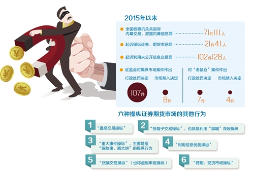 中国证监会法律部主任程合红表示,依法查处操纵市场、“老鼠仓”是证券期货监管执法的重点。2015年以来,证监会依法严厉查处操纵市场和“老鼠仓”违法行为,对操纵市场案件作出行政处罚决定107件、市场禁入决定8件;对“老鼠仓”案件作出行政处罚决定7件、市场禁入决定4件。对于涉嫌构成犯罪的,依法移送公安司法机关处理。
