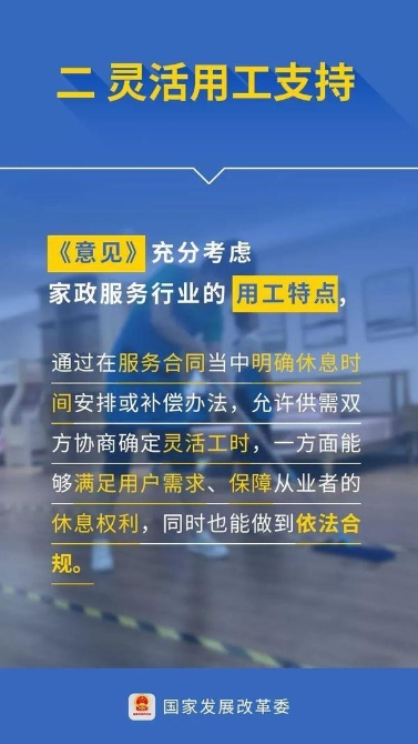 《意见》对于员工制家政企业的发展明确了许多支持措施,归纳起来就是“六个支持”。
