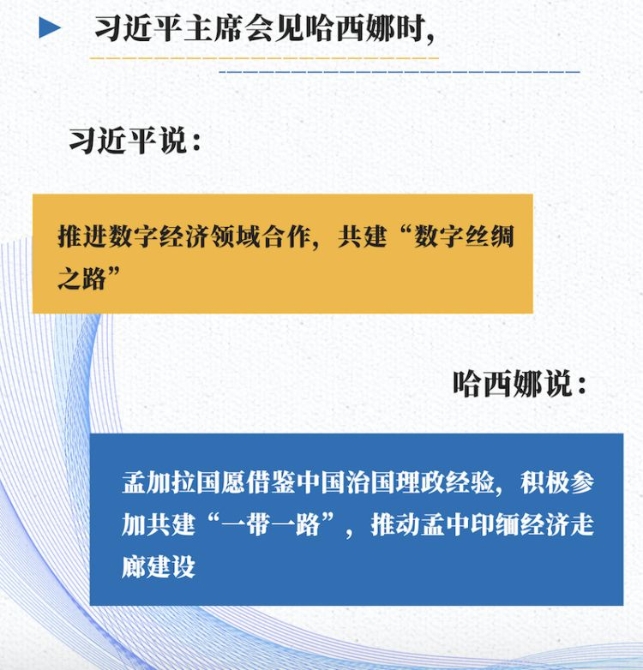 从南亚的孟加拉国,到亚欧交界的土耳其,再到巴尔干半岛的保加利亚,三个国家恰好将亚洲和欧洲——古丝绸之路的两端紧密相连。“一带一路”合作自然成为中外领导人关心的话题: