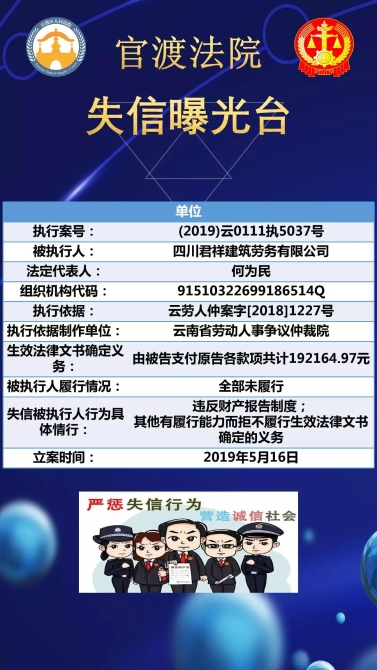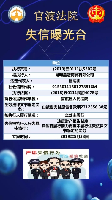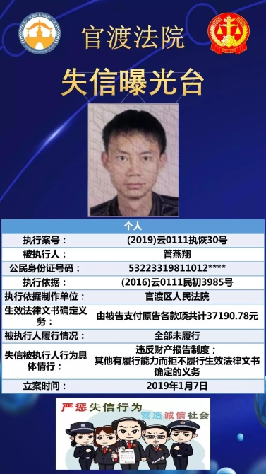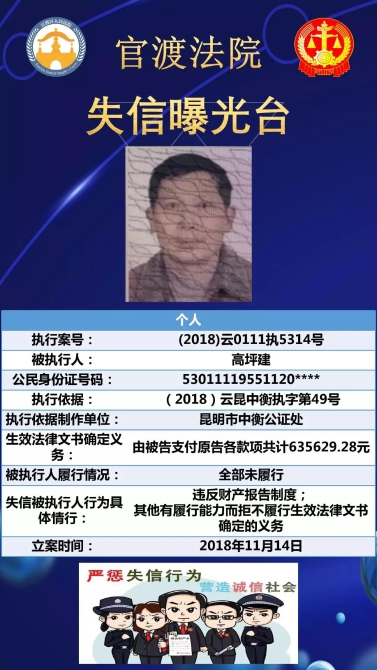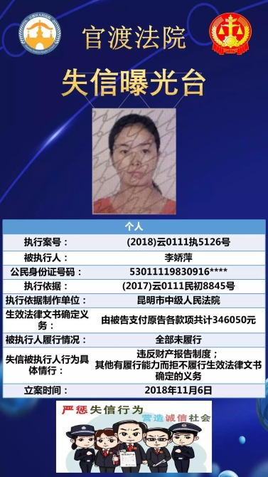 近日,记者从昆明市官渡区人民法院获悉,昆明曝光一批失信者被执行人名单,共20人。