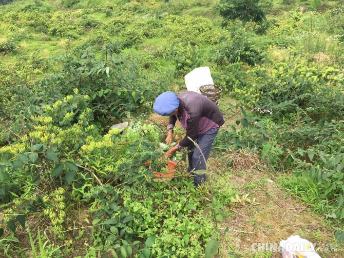 “以前只有种玉米,吃玉米饭,基本没有收入,只能外出打工。”42岁的村民陈德敖说,2012年从外省打工回到家乡开始种植金银花,陆陆续续种植到现在已经有26亩。除去支付工人每斤一元的手工采摘费,每斤还能赚5.5元。去年,陈德敖的金银花收益4万元。