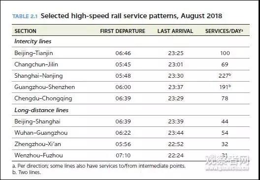 以2018年8月数据为例,类似北京至天津、广州至深圳之类的城际短途高铁列车,已经可以做到每天发车100班次以上。上海至南京段甚至可以做到每天227次(双向)。长途来看,北京至上海、武汉至广州等班次,也可做到每天50次左右。