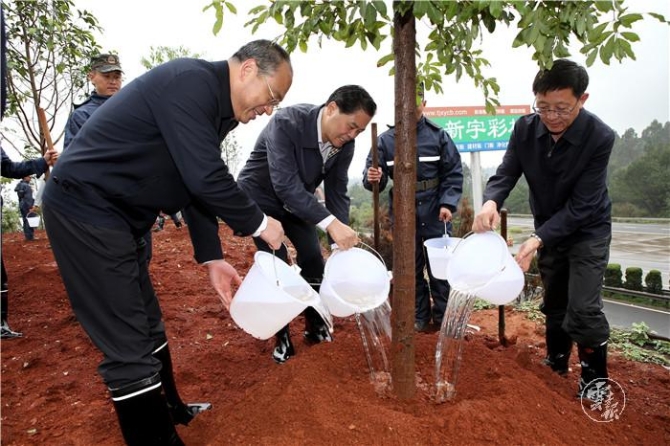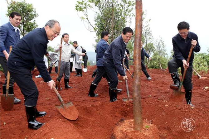 季夏的春城细雨绵绵,青山含黛。7月10日上午,省委书记陈豪、省长阮成发、省委副书记王予波等党政军领导到昆明市安宁市参加义务植树活动。