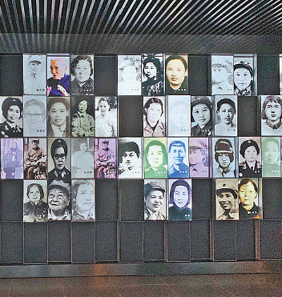 中国女红军纪念馆的照片墙(局部)。 本报记者 黄 娴摄