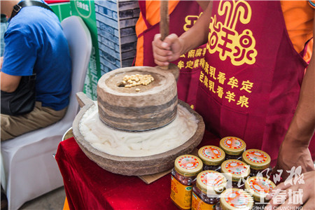 “天宝斋已有155年历史,要知道什么是墨香,闻一闻天宝斋的墨汁便知。”据天宝斋制墨技艺第五代传承人李玉霖介绍,天宝斋墨的历史渊源可以追溯到唐末,现在天宝斋制墨技艺已被列入云南省非遗保护项目,墨厂将在传承中不断创新,以匠心精神把墨汁做到精益求精。与此同时,在精益眼镜展区还能看到明清至近代的古董眼镜,感受眼镜发展演变的“前世今生”;在拥有百年历史的“鸿庆号”展区,能看到“鸿庆号”珍贵的老茶,品尝“鸿庆号”各年份以古六大茶山普洱茶;在老俩口豌豆粉展区则可以品尝到16种口味、28种做法的豌豆粉系列。