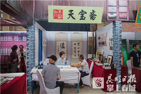 此次的老字号老品牌联展区不仅有井气息浓郁的昆明滋味,又有颇具情怀的历史氛围与文化韵味。开展期间,由云南红云红河集团、云纺集团、昆明精益眼镜、云南鸿庆号茶业、云南云子文化、天宝斋墨业、老俩口豌豆粉、天台羊泉腐乳、杨林肥酒、中轻依兰、宝翰轩、王子荣祖传无敌中医馆、云南盐业、腾药等12家老字号企业组成的老字号老品牌联展(昆明老字号综合市场),在绿皮墙、木墙、复古牌匾等老昆明元素的映衬下,真实还原了昔日老昆明市场的风采。