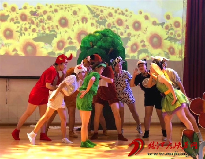比赛展示中,老师们以年级组为单位,通过题材选取、道具制作、编排策划、音乐截选等,给大家呈现了《冰雪奇缘》《森林小卫士》《白雪公主与七个小矮人》《月亮的味道》4个精彩的节目。