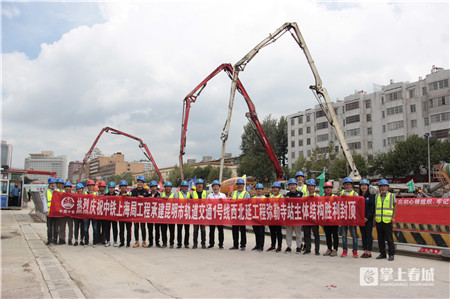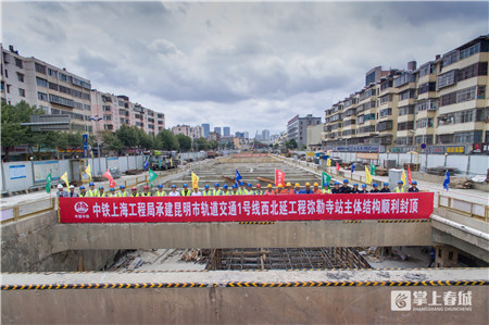 中铁上海工程局全体参建人员上下齐心、优化工筹组织,加强工序衔接,强化内部控制,按计划完成了车站主体结构封顶任务。(掌上春城 记者杨梦奇 )