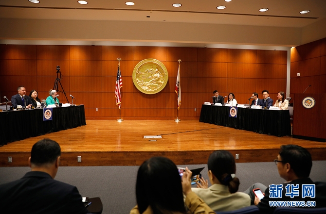 这是7月17日在美国加利福尼亚州旧金山拍摄的州众议院听证会现场。 新华社发(李建国摄)