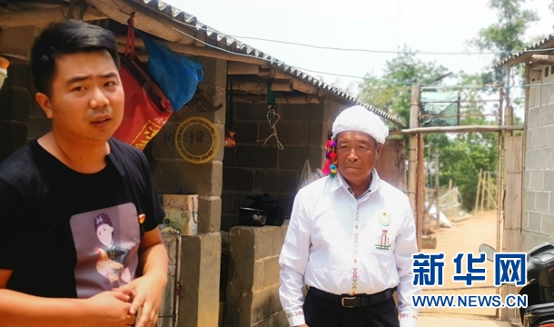 “鸡司令”段必清在景颇族老党员勒定家里。杨晓波 摄