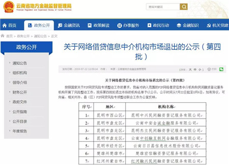 此前,云南省地方金融监督管理局网站已发布了3批“关于网络借贷信息中介机构市场退出的公示”↓↓↓