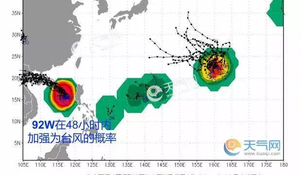 据美国国家环境预报中心(NCEP)超级计算机集合预报结果显示,92W将会在7月31日前后就加强为今年第7号台风“韦帕”。“韦帕”生成后将向西北方向移动直奔我国海南岛和广东西部沿海一带,模式最新预计其八月初登陆海南的概率较大。