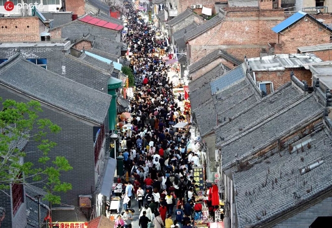 2019清明小长假的第一天,洛阳老城历史文化街区,游客人流如织。