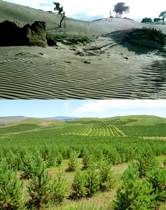 2000年,饱受风沙之苦的多伦县启动了京津风沙源治理工程,大规模实施林业生态重点工程,一手抓种树,一手抓禁牧,“ 飞、封、造、禁、移、调”多措并举综合治理沙化土地。