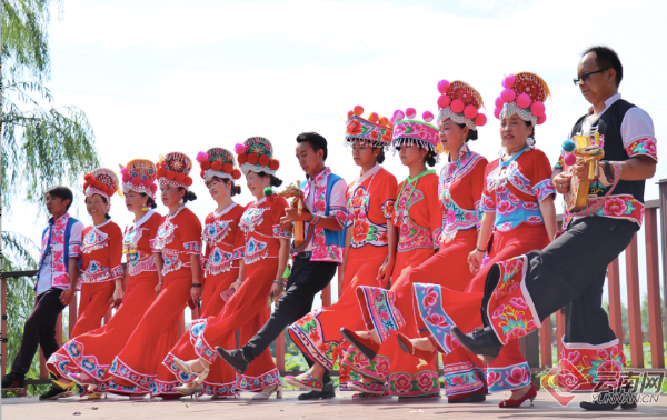 上午,舞蹈《盛世花开》拉开了开幕式文艺演出的序幕。接着,花灯歌舞《姚安小邑拉花》《闺盼》《崴花灯》跳出了百姓对生活的热爱;女声独唱《好儿好女好江山》《牵着彩云来看你》《荷城颂》唱出了姚安人民的新期盼;男声独唱《山里的火塘》《大山走出的孩子》《中国彝乡》《想唱你就来》展现了彝乡新气象;舞蹈《欢乐小花腰》《信念》《梅葛恋曲》《高原欢歌》展示了民族歌舞和非遗音乐的魅力。