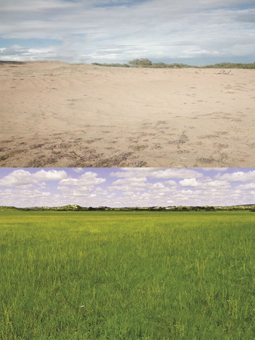 小扎格斯台封禁保护区治理前后对比图(上图为治理前)。正蓝旗林业和草原局供图