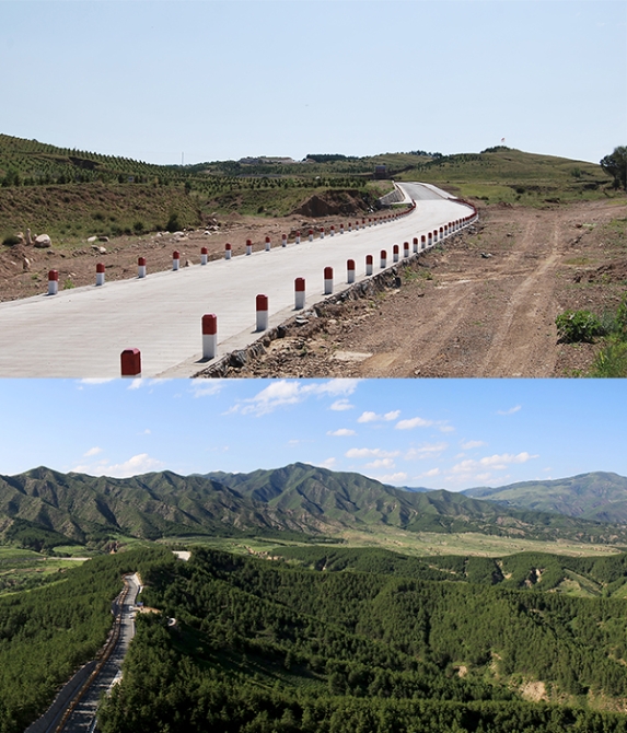 哈拉沁沟建设前后对比图(上图为建设前)。中共呼和浩特市委网信办供图