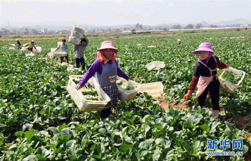 砚山县稼依镇小稼依村的农妇在蔬菜种植基地收菜