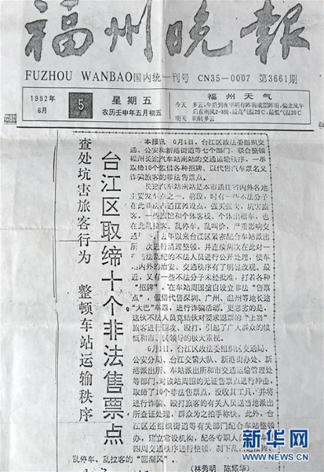 这是7月19日拍摄的郝郁民、张玉生和韩忠民收到的《福州晚报》复印件。新华社记者 曹阳 摄