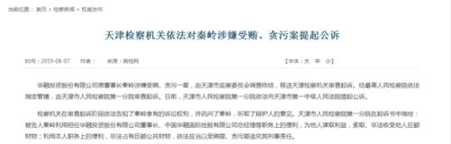 据最高检8月7日消息,华融投资股份有限公司原董事长秦岭涉嫌受贿、贪污一案,由天津市监察委员会调查终结,移送天津检察机关审查起诉。