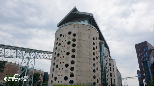 工业遗存和现代元素,在这里完美融合:钢筋混凝土圆筒被镂空雕刻出圆孔等图案,便于建筑物取光;周围转运站、料仓等建筑物外墙保留了原始风貌;架设在空中的皮带通廊在空中勾勒出硬朗的线条……光纤照明、光伏发电、雨水收集等绿色科技工艺,全都用在了这处先行试点改造的区域。