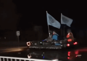 10日23点,在临海北下高速,更多的车子载着支援的冲锋舟赶赴现场!