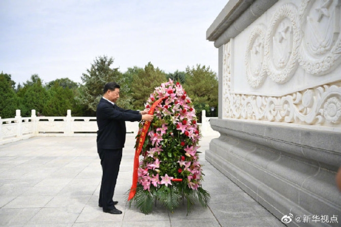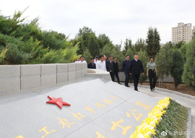 【习近平向中国工农红军西路军革命先烈敬献花篮】习近平总书记20日上午来到甘肃省张掖市高台县,瞻仰中国工农红军西路军纪念碑和阵亡烈士公墓,向西路军革命先烈敬献花篮,并参观了中国工农红军西路军纪念馆。(文字记者:张晓松、朱基钗 摄影记者:鞠鹏、谢环驰)