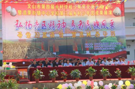 6月3日,在追栗街镇中心学校举办了以“弘扬老区精神,展我民族风采”为主题的文山市第四届乡村学校少年宫交流活动暨追栗街镇中心学校第三届乡村少年宫成果汇报展演。