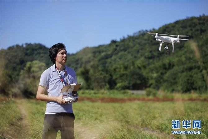 卢纪烨在操作无人机(7月22日摄)。新华社记者吴鲁/摄