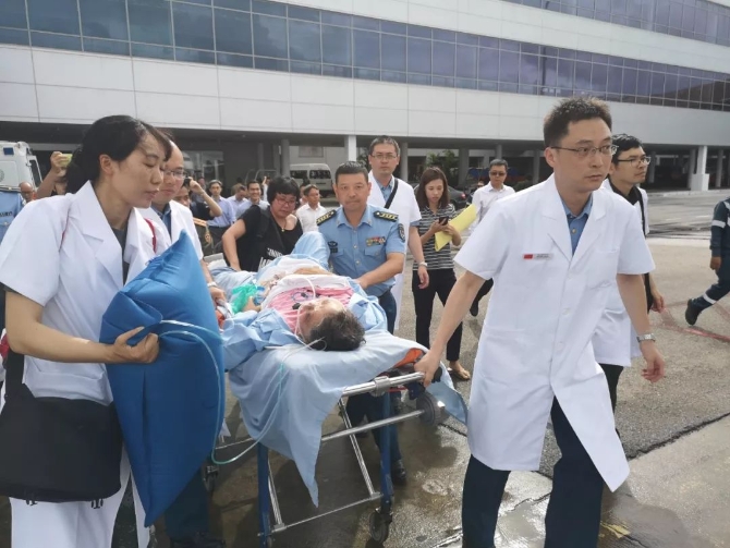 22日下午3时40分,包括2名重伤员在内的3名受伤中国游客在我军“和平列车”医疗队医护人员护送下,乘坐我军直-8G新型加改装救护直升机,从万象瓦岱机场起飞回国。稍后,我军医疗队医护人员又护送另1名伤情严重的中国游客乘坐中国东方航空公司MU2574航班返回昆明。