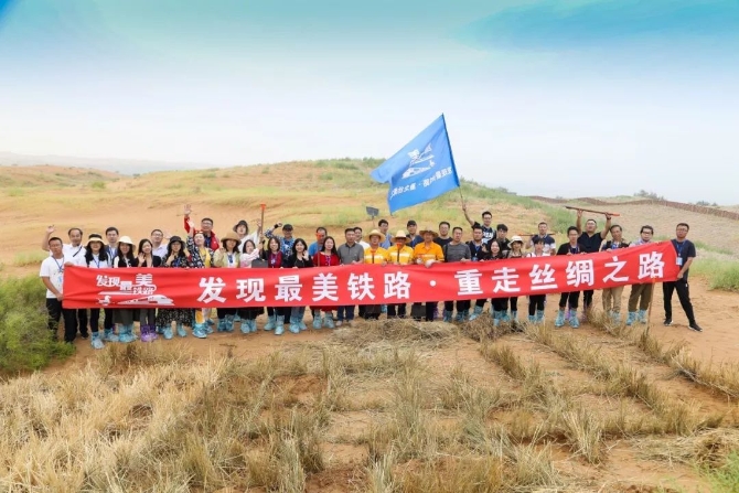 今年8月21日“发现最美铁路·重走丝绸之路”发现团走进中卫在中卫固沙林场感受三代治沙人创造的世界奇迹
