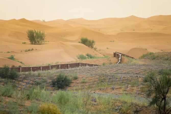 惊奇的是第二天这几个字没有被夜间流动的沙涛所淹没依然挺立在沙丘之上由此给治沙带来了新的灵感