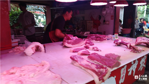 随后,记者走访部分农贸市场看到,当天市场猪前腿、五花肉(无公害肉、大猪除外)零售价一般在26元/公斤至28元/公斤,后腿肉、排骨肉在27元/公斤至29元/公斤,与7月份相比,零售涨幅也在10%左右。与今年4月份至5月份相比,涨幅已接近20%。