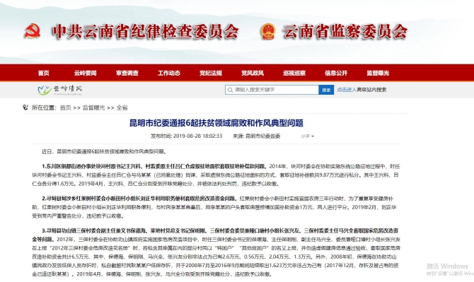 记者8月28日从云南省纪委监委网站获悉,近日,昆明市纪委通报6起扶贫领域腐败和作风典型问题。