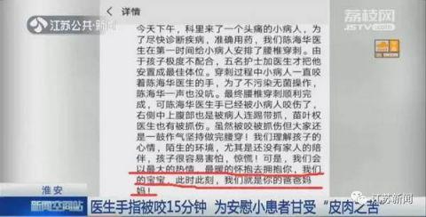 “为了操作能够顺利进行下去,我没有过分地去阻挠。大概有15分钟左右,我的手指一直被他咬着。”陈海华说。