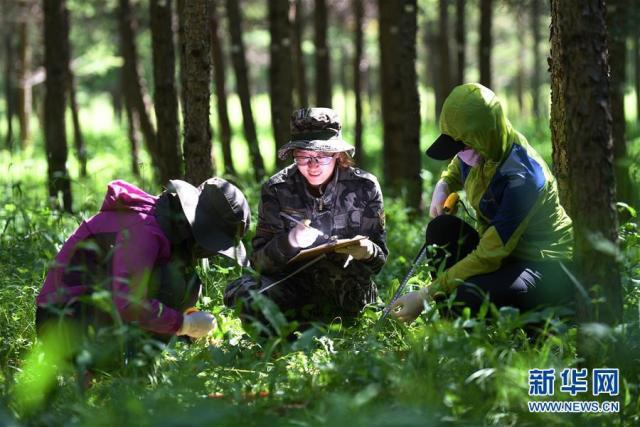工作人员在河北塞罕坝机械林场采集数据(2017年7月12日摄)。新华社记者 王晓 摄