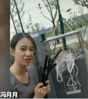 视频里的女孩叫冯月月,最近这段时间,她几乎每天都会在网络平台上录制一些短视频,拍摄背景大多是垃圾箱前,或者废品回收站里,内容则是劝导网友对垃圾进行正确分类,或者科普一些简单的鉴别方法。