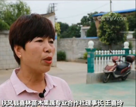 陕西省扶风县喜林苗木果蔬专业合作社理事长 王喜玲:如果是说流转土地的话,村民一亩地可以拿到八百元,有劳动能力的或者贫困户都可以到咱们这里来干活儿,咱企业运转得好,也有给贫困户分红这一块。