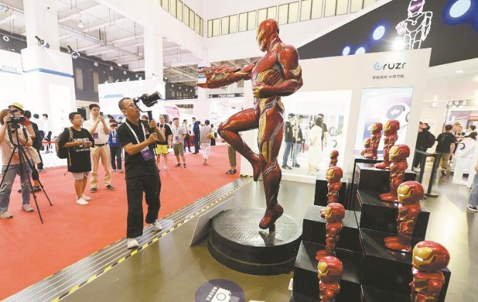 在大会现场,形形色色的机器人各显神通。哈工大集团旗下一家公司带来一款可穿戴水下动力背包,该公司副总经理熊祥介绍,这种背包可帮助潜水人员在水面和水下完成高难动作。中科新松有限公司展示的协作机器人也让参观者们不由自主举起手机,拍摄它在集成电路板上的灵巧操作。