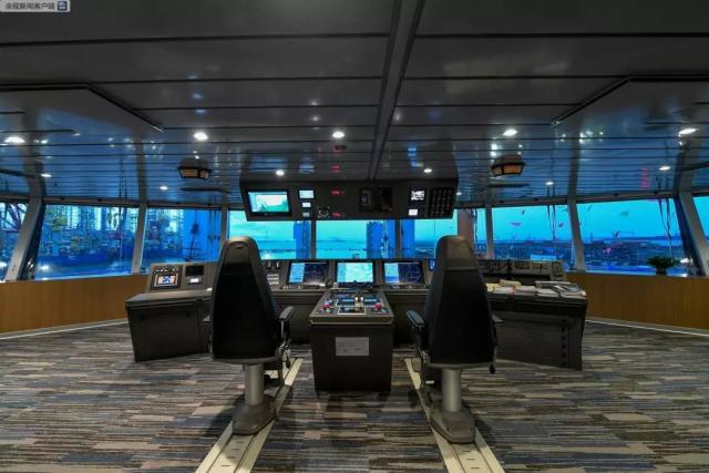 △邮轮主餐厅,可以为船上宾客提供各式餐饮,满足不同国家乘客的各种口味需求。位于邮轮7层的驾驶舱,是整个邮轮的大脑,拥有智能化控制系统,一个人即可实现对整个邮轮的操控。