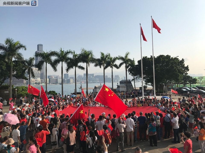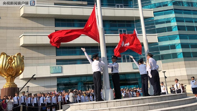 9月8日,香港逾千名各界人士在金紫荆广场举行隆重的升旗仪式,共唱国歌,弘扬爱国爱港的社会正能量。