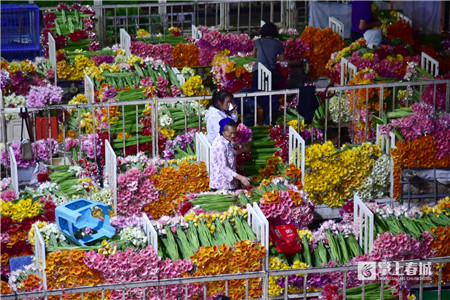 晚上8点30分,大批供货商、采购商从几个闸机通道涌入市场,斗南花市正式开市,夜幕下沉静的花市一时间脚步纷纷,人声鼎沸。这让央视北美区域制作中心资深记者Sean Callebs惊呼从未见过这样的场景,“顾客和商人同时涌入,他们竟然能分清每个品类、货物、批次,询价、看货、成交再到物流发货,整个过程看起来都非常的高效。”他表示,自己第一次来昆明,昆明的气候及环境都让他非常舒服,这里品种多样的花卉更是让他留下深刻印象。