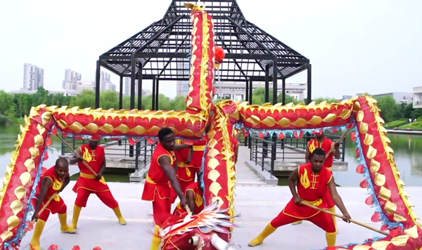 走进徐州工程学院,一群黑皮肤的非洲小伙正随着铿锵激昂的鼓点,舞动着一条飞腾跳跃的“中国龙”。