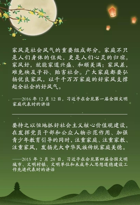 家风家教,春风化雨般直接影响着人的成长。正如习近平总书记所指出的,“家风好,就能家道兴盛、和顺美满;家风差,难免殃及子孙、贻害社会。” “领导干部的家风,不仅关系自己的家庭,而且关系党风政风。”习近平不止一次敦促各级领导干部带头抓好家风:“要留留神,防微杜渐,不要护犊子”、“防止‘枕边风’成为贪腐的导火索”。