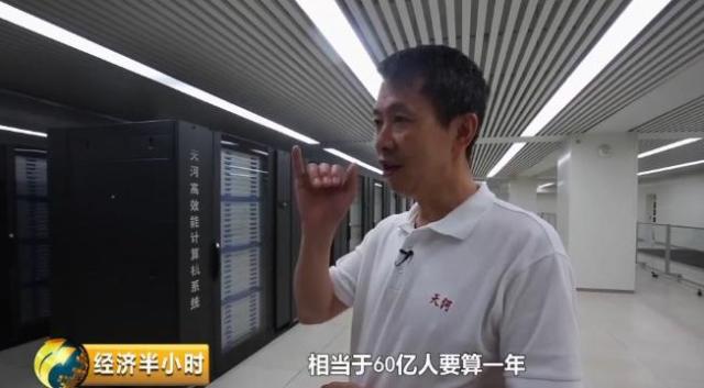 国家超级计算天津中心主任刘光明:天河一号的性能是4700万亿次,换算成全世界人去做四则运算,相当于60亿人算一年,但是超级计算机,一秒钟就可以算完。